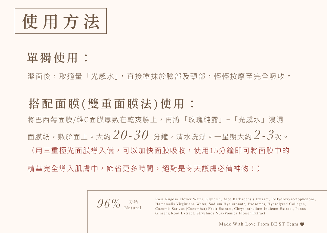 BE.ST玫瑰凍齡嫩肌光感水100ML(非賣品)