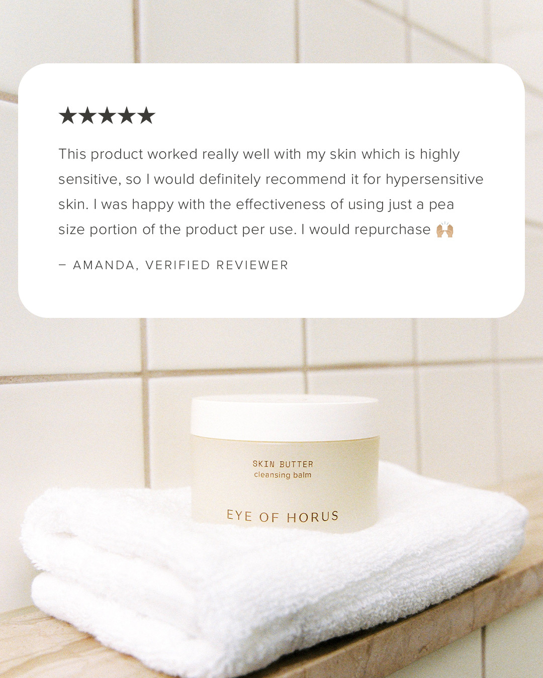 4. Finish by gently wiping with an Eye of Horus Cleansing Pad or a soft face towel for a refreshed feel.