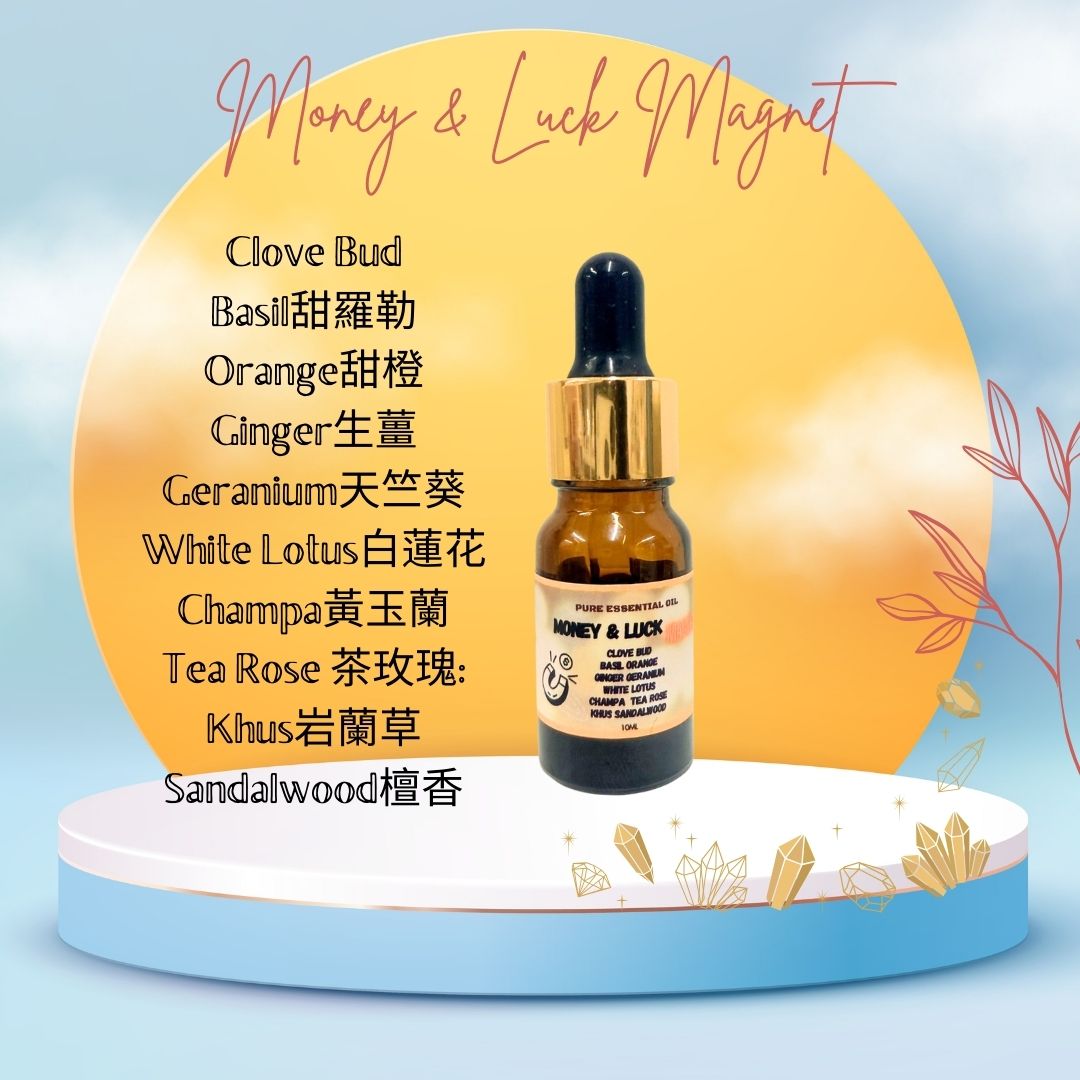 - 招財錢包/存摺儀式: 將 1滴精油 滴在棉片上/噴灑噴霧,放入錢包夾層或與存摺放在一起。每月重複一次,象徵財庫能量更新。