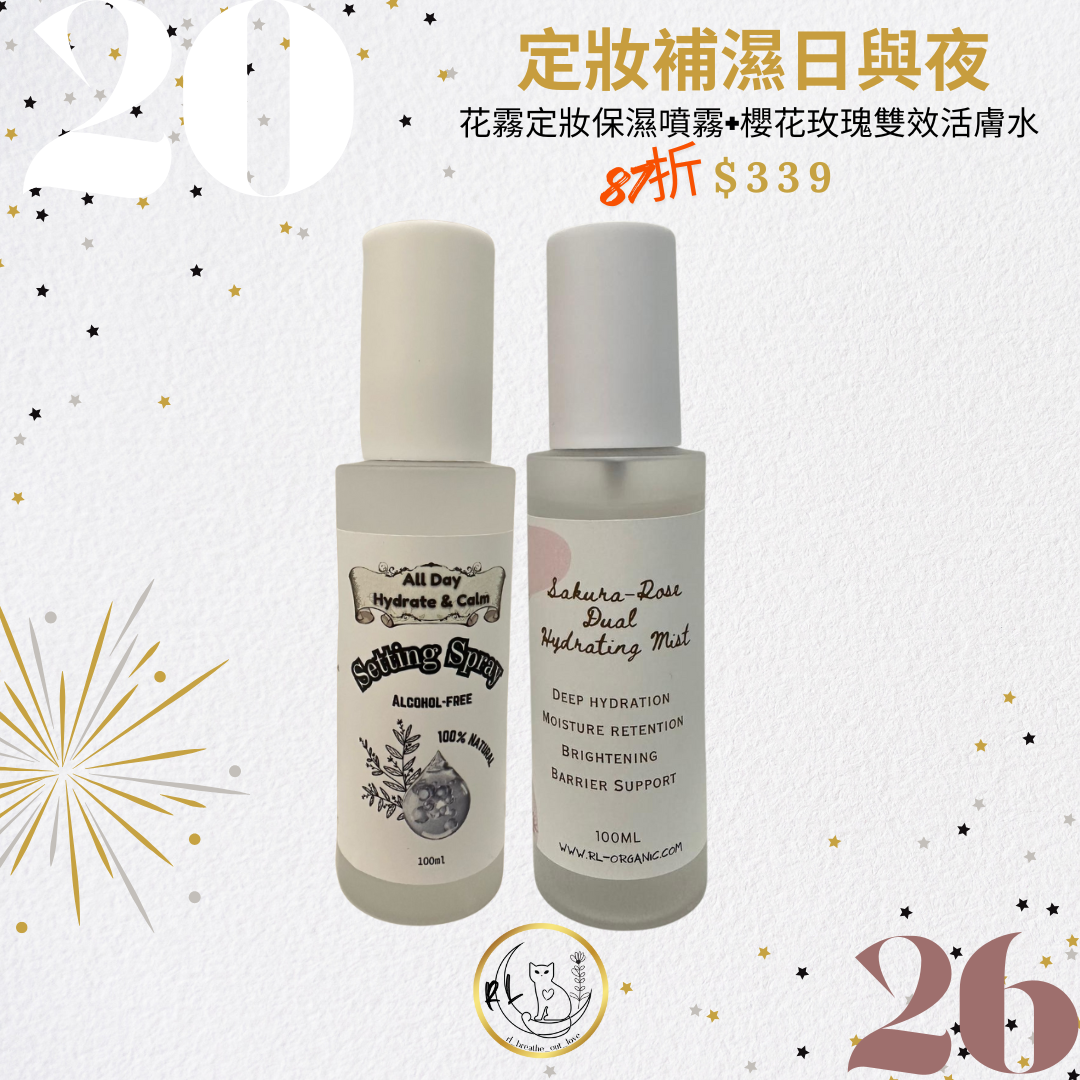 - 【90%有機植萃】雙重花水 × 煥亮屏障修護